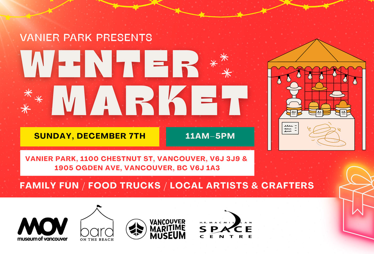 Get your holiday vibe on at Vanier Park's Winter Market. This seaside fest features local vendors with handmade gifts, cozy food and drinks from trucks, and entertainment that'll warm hearts. Explore three cultural spots—the Museum of Vancouver, H.R. MacMillan Space Centre, and Vancouver Maritime Museum—with Pay What You Can admission, plus Bard on the Beach's costume corner for fun selfies.